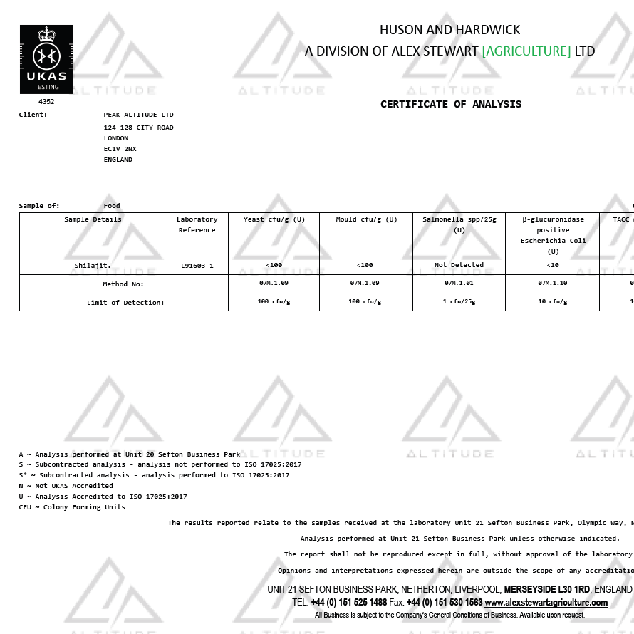 That’s why we partnered with a UKAS-certified, third-party testing lab in the UK to confirm that our Shilajit is free from harmful substances. The test results demonstrate that our Shilajit is safe and contains no harmful elements. If you would like to view the test results, please see below.