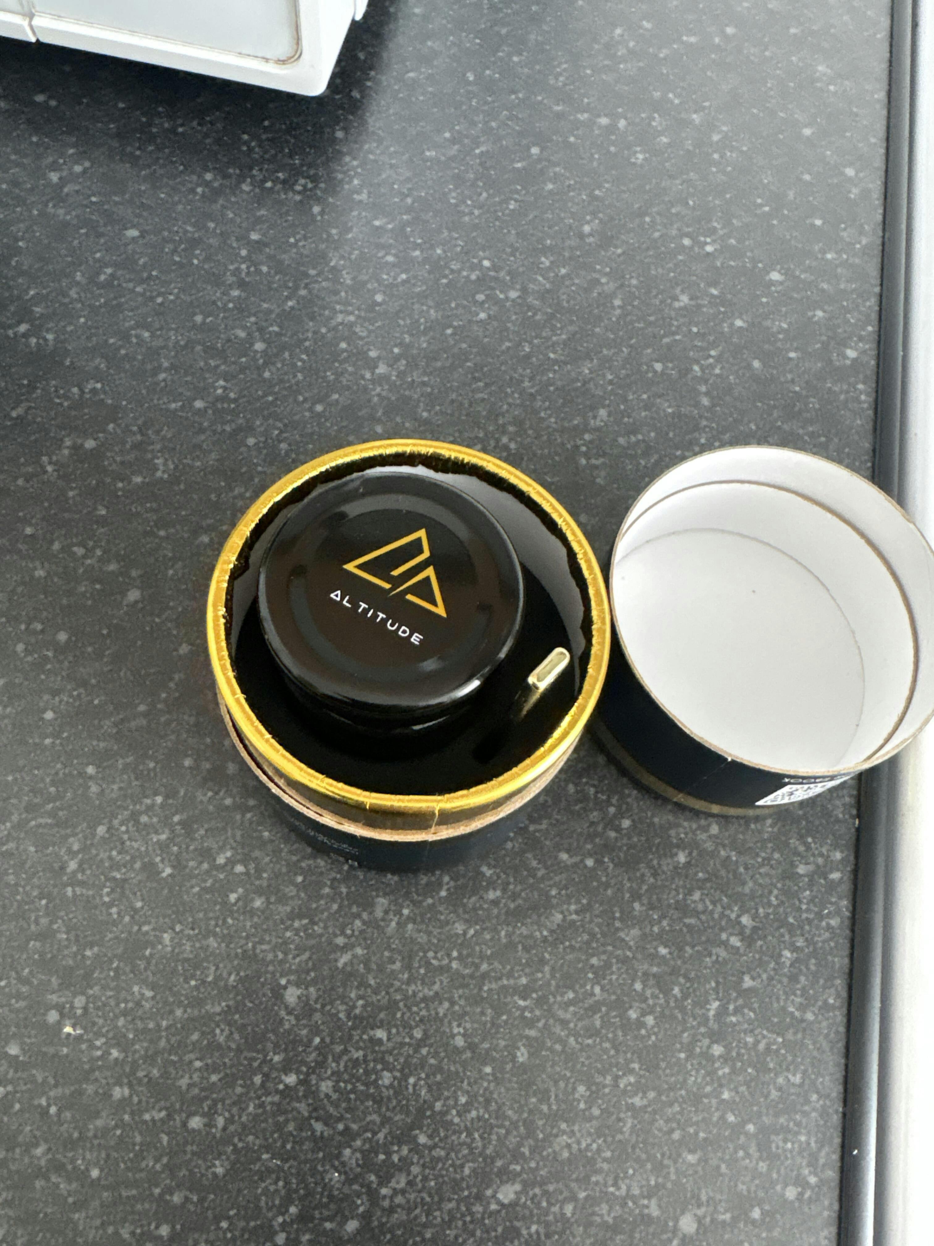 Using the measuring spoon provided, extract a pea size (250-500mg) portion of Shilajit resin from the jar.