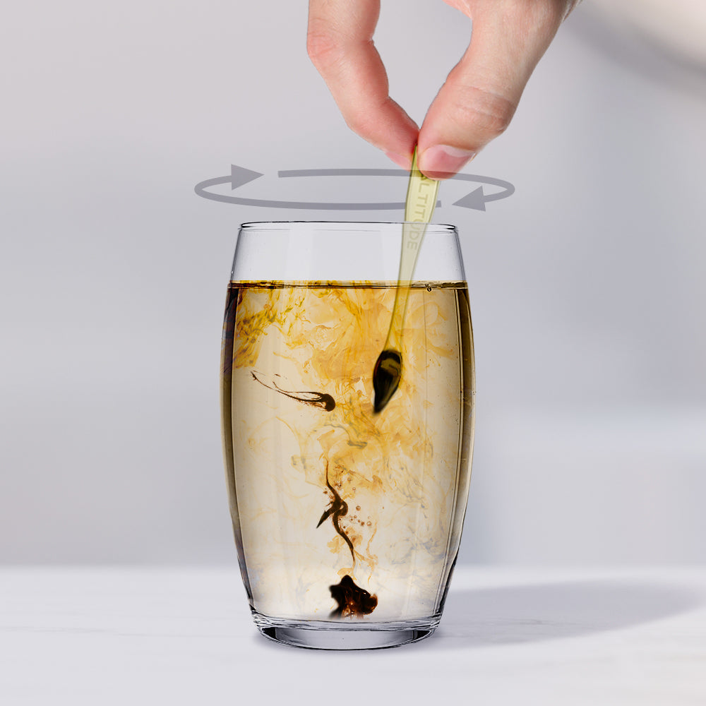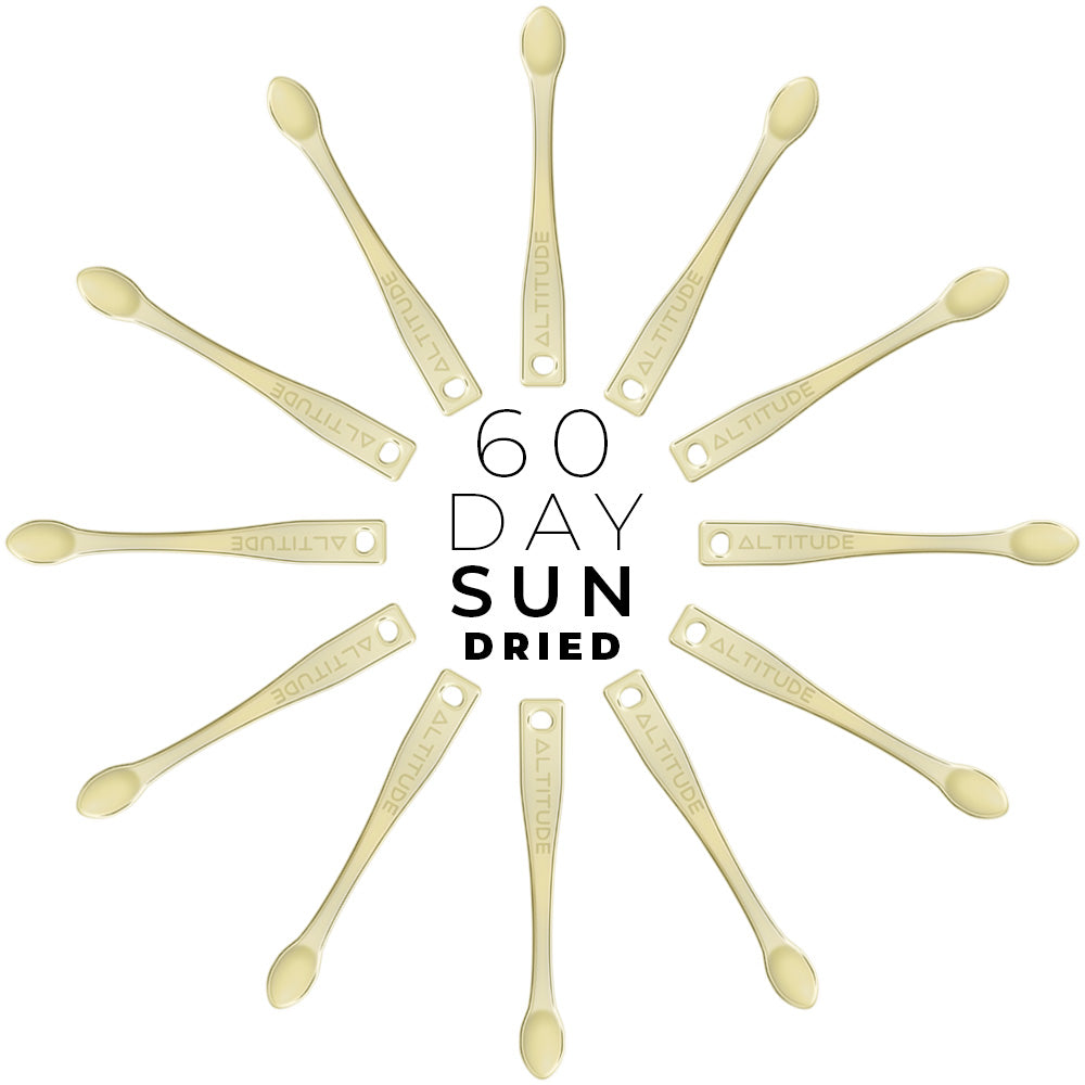 Using the measuring spoon provided, extract a pea size (250-500mg) portion of Shilajit resin from the jar.